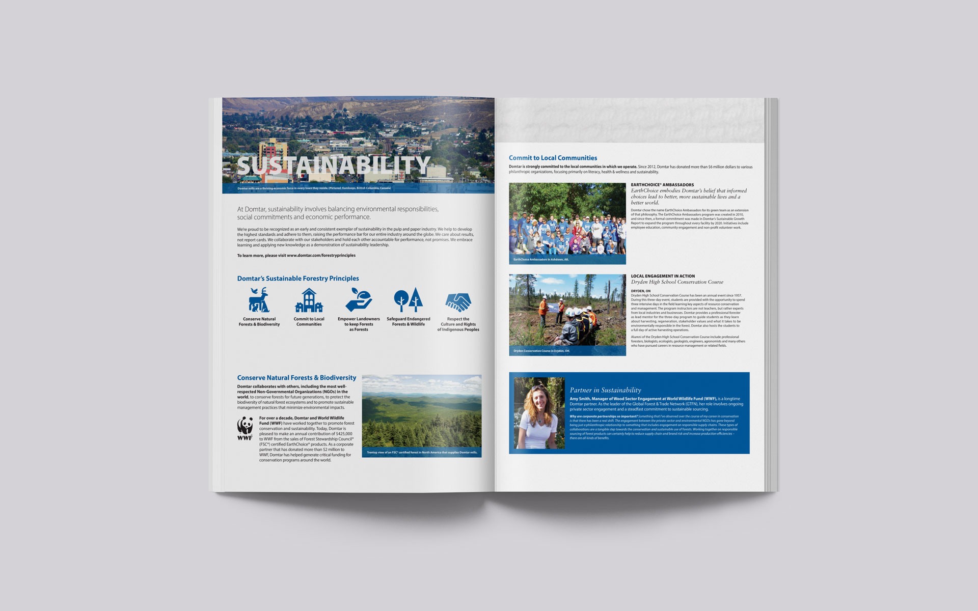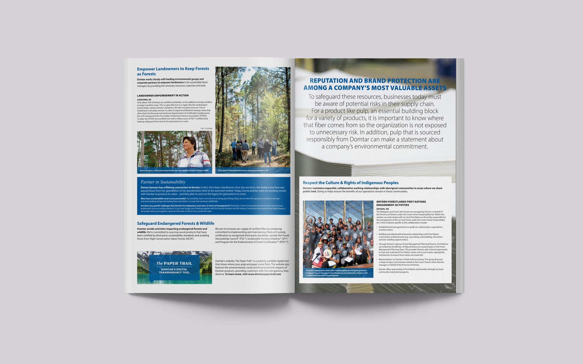 As Domtar was expanding into the pulp market, they needed help to communicate their story of sustainable forestry practices and being a trusted and innovative supplier of pulp (the plant-based cellulose fibers that are an essential building block for a variety of products). Domtar hired Mindful & Good to help create a sustainable design series of brochures and collateral to communicate the Domtar story of being a leader in innovative pulp products and their environmental commitment. From the series, the company was able to grow it’s pulp business to sell in over 40 countries worldwide.