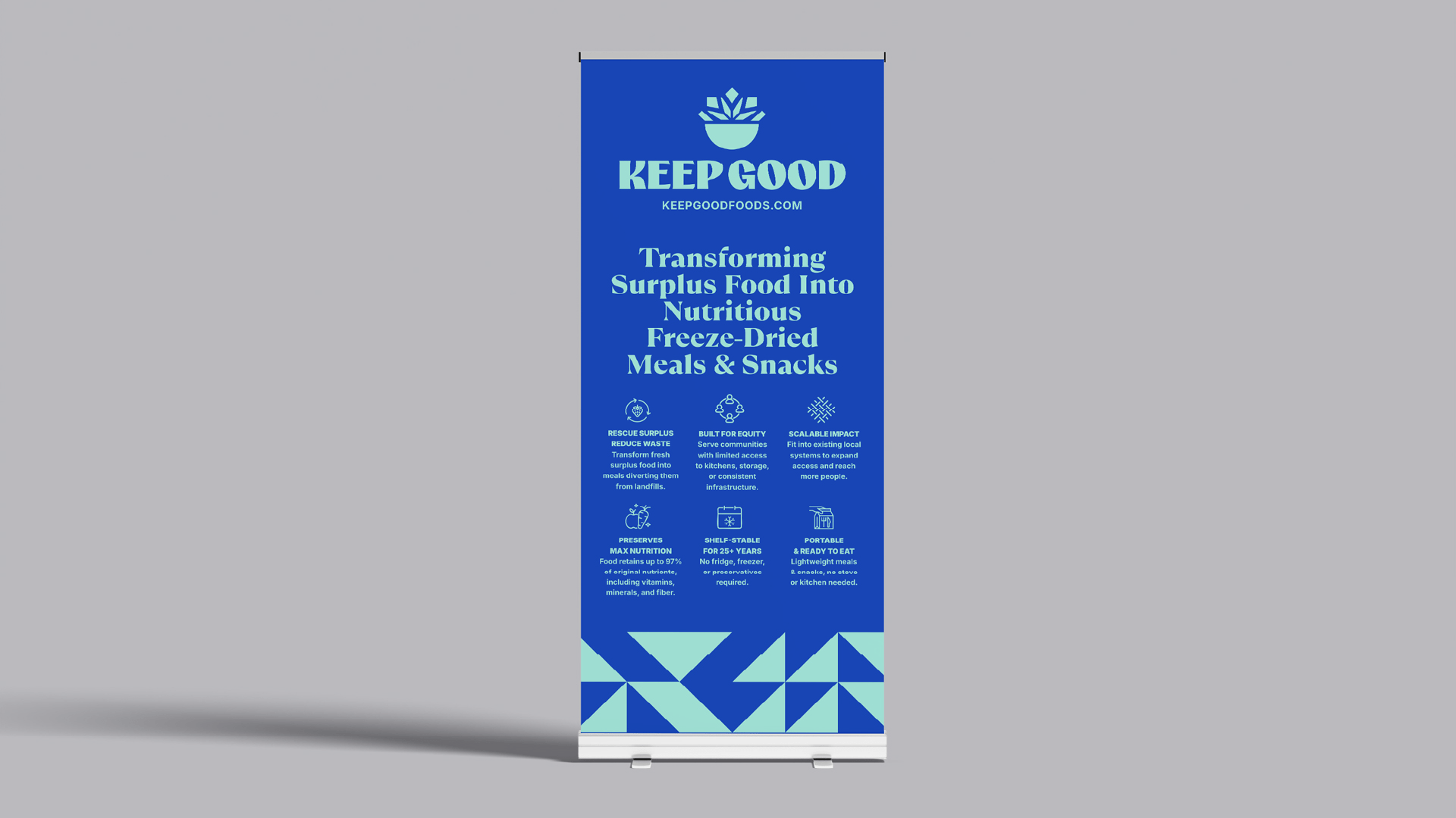 Mindful & Good partnered with Keep Good to develop a name, brand strategy, and visual identity that could carry the weight of a global challenge while staying grounded in simplicity and hope. The goal was to build a brand that communicates innovation without losing sight of humanity, and one that speaks clearly to nonprofits, partner organizations, and communities in need. The identity draws inspiration from the process of preservation itself. At the center is a symbolic bowl, warm and welcoming, holding geometric fragments that echo the structure of freeze-dried food. This form captures the transformation from excess to access and reflects the imperfect, evolving nature of our food systems. The palette is cool, calm, and confident, evoking freshness, trust, and longevity. The result is a brand that feels modern yet humble, technical yet deeply human. It embodies practical optimism and reinforces Keep Good’s purpose: to preserve good food and extend its life where it matters most.