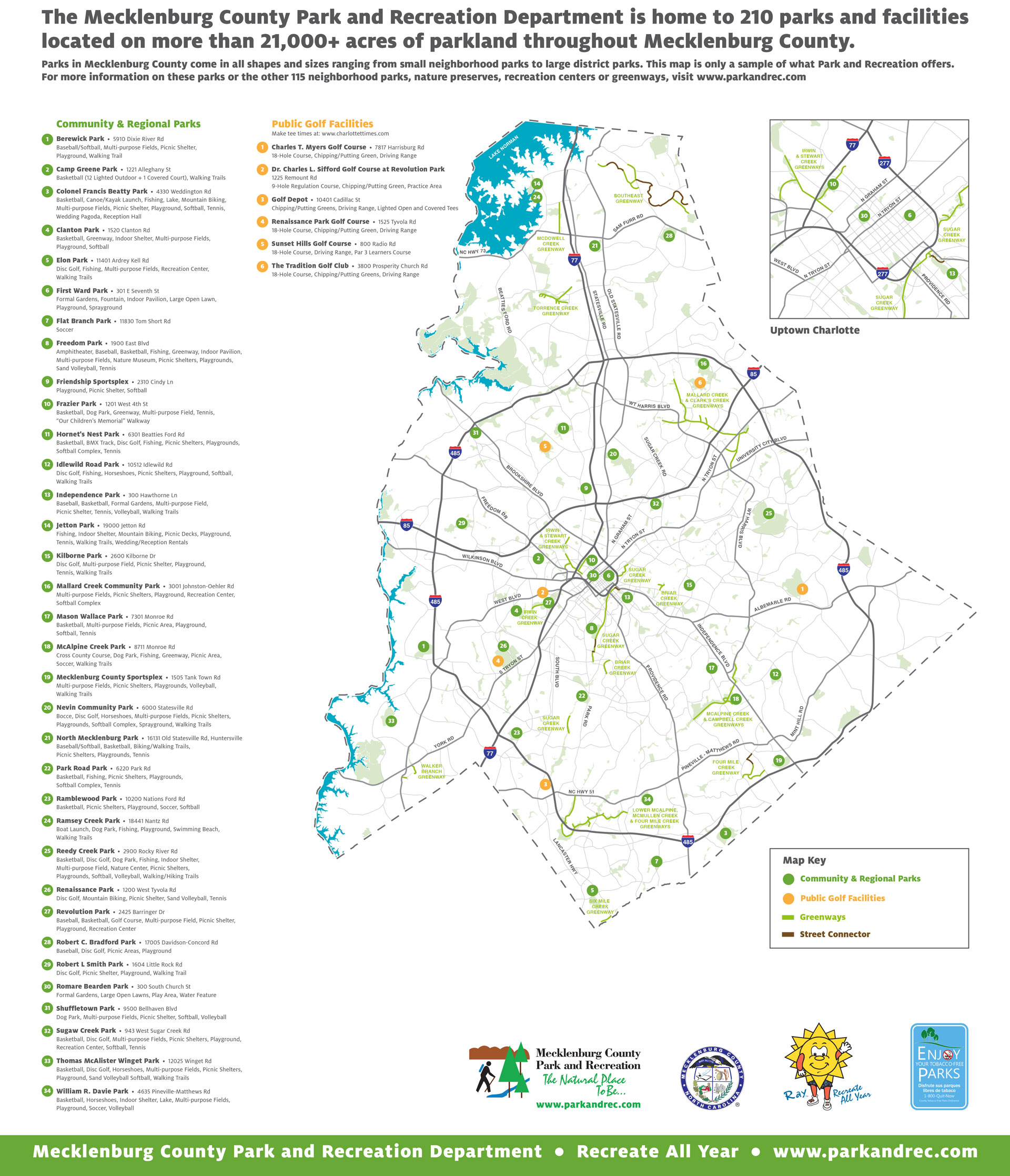 With over 21,000 acres and 210 parks and facilities ranging from large to small, you will be amazed at all that Mecklenburg County Park and Recreation has to offer.